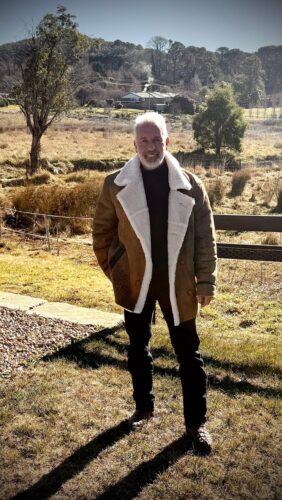 Hagan's Tan Aviator bomber Suede shearling jacket photo review