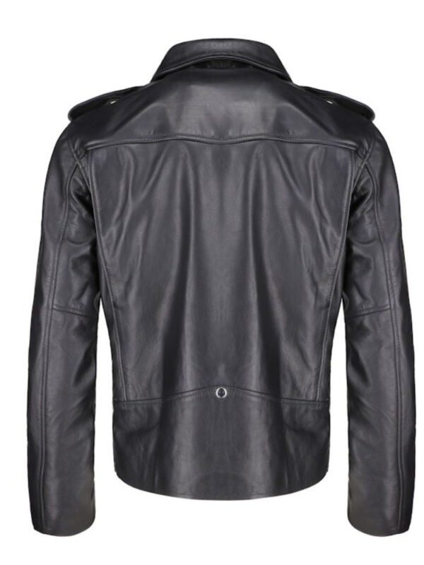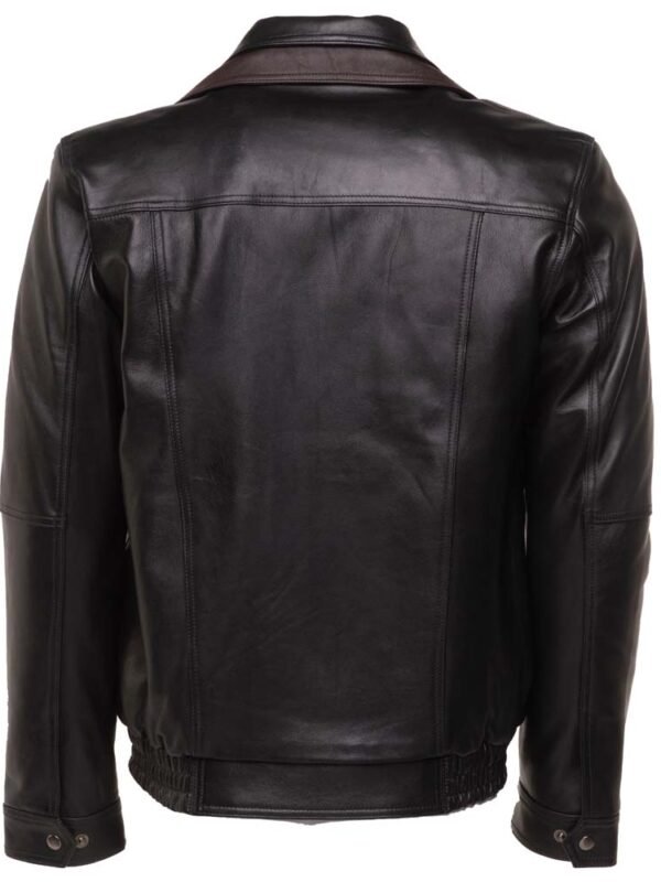 Byrne’s brown and black Aviator style leather jacket with spread collars