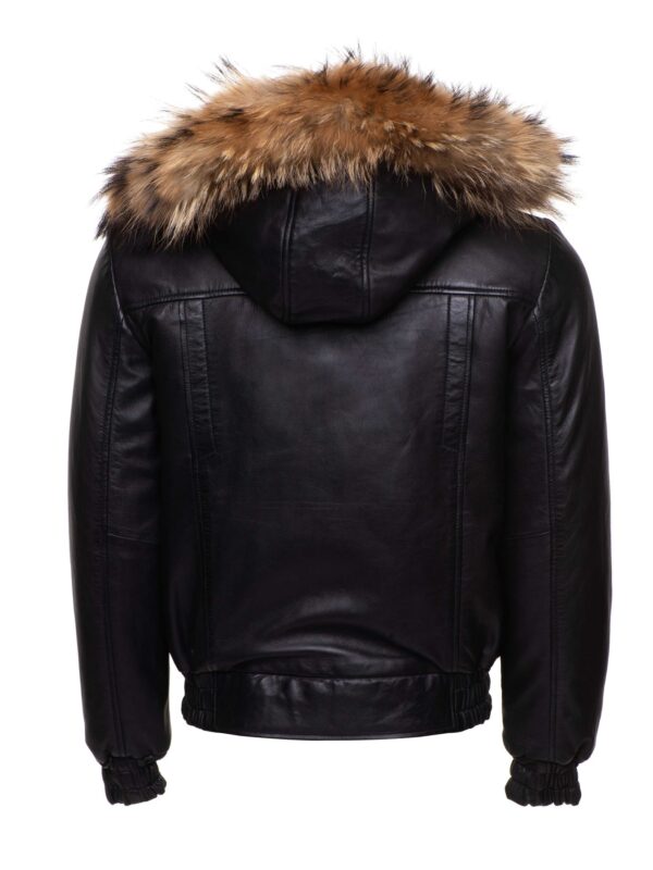 Castillos bomber Winter Leather Jacket with Real fox fur hoodie