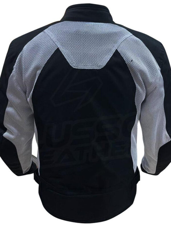 Black and white suzuki gsxr motorycle jacket with armor protection