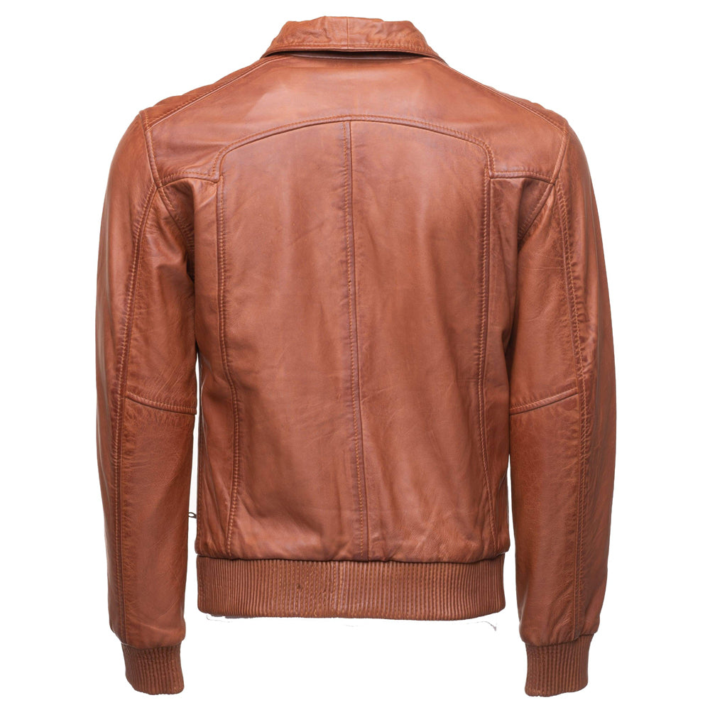 Beltrans sand washed leather jacket with stretch leather hems & cuffs