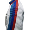 BMW white motorcycle jacket with red and blue stripes and armor protection