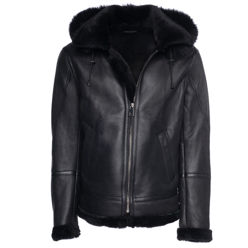 Felix black bomber shearling jacket with hoodie