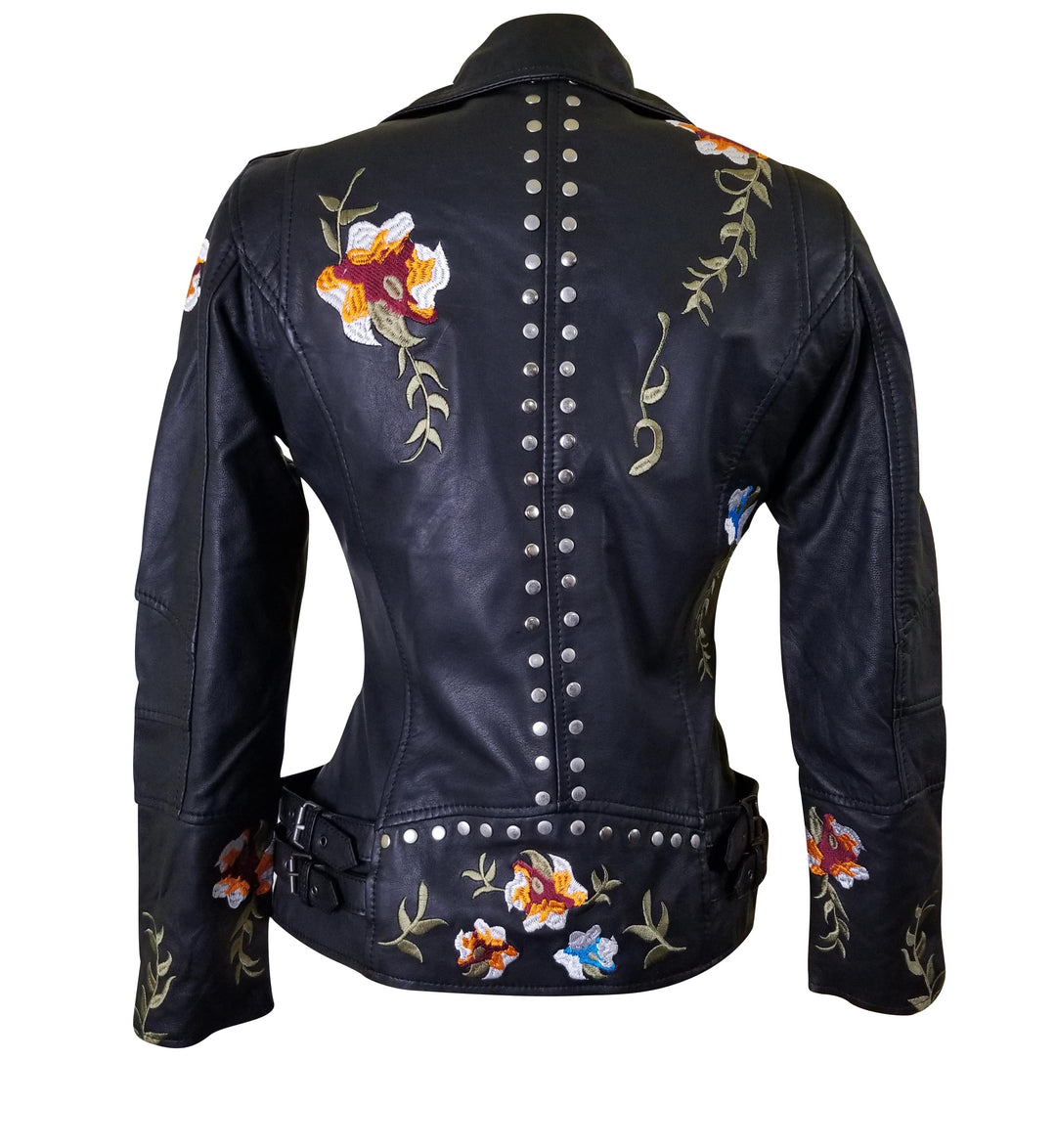 The classy-looking Flowery Embroidered Leather Jacket with studs definitely has an elegant appearance. The whole top-to-the-bottom look of this leather jacket screams fashion. The beautiful stud detailing on the front, back, and cuffs make it more desirable to wear. The external side of this jacket is manufactured using premium quality full-grain leather material. On the internal side of this jacket, there is a lining of smooth and soft satin polyester attached that keeps you warm and comfy all the time. There is a side zipper attached to the front side for the closure. The jacket has a studded notch lapel-style collar with press studs too that gives a lavish look.