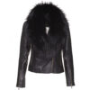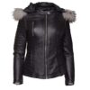Larissa’s Black Leather Jacket with Hoodie and Fur Trim