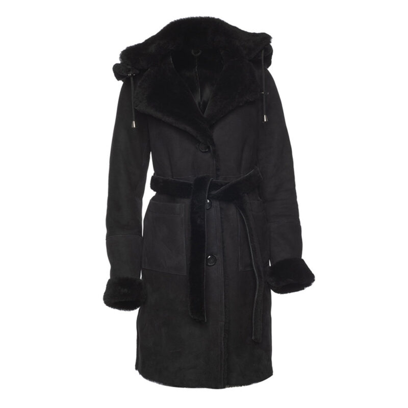 Melissa Black suede shearling coat with belt