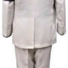 - Shown in ivory wool/silk blend with black chalk stripe. Other colors/patterns available by request.
