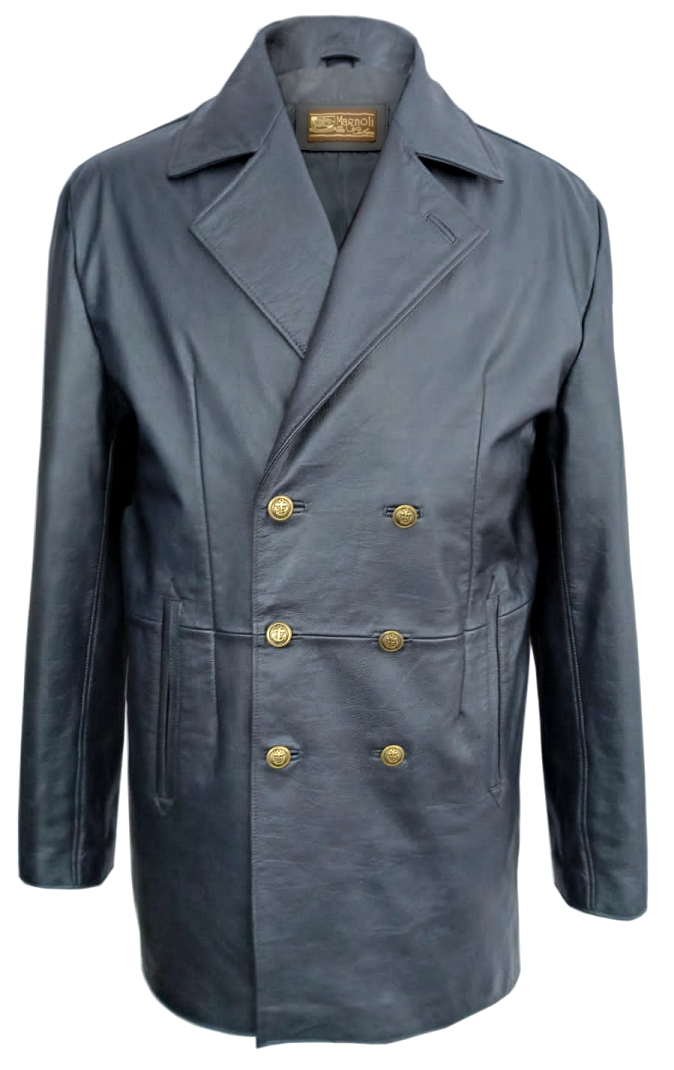 Navy Leather Peacoat