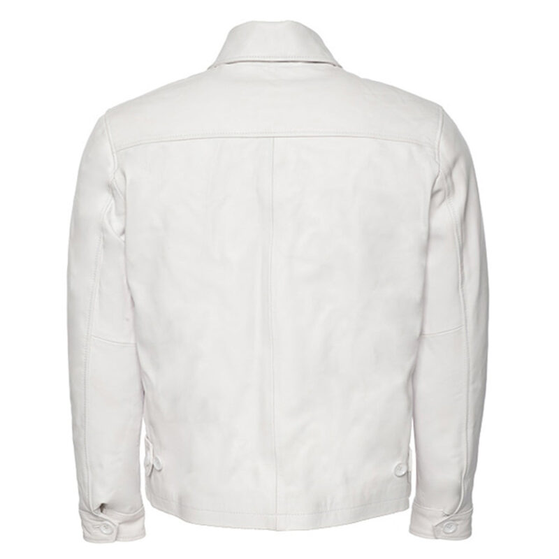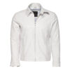 Re-invent your fashion style personification with this Pierre White leather jacket to make a stunning fashion statement in this ravishing white jacket. It effortlessly carries all of the necessary elements to make a strong statement. Made from good quality materials like top-grain leather and gives a sturdy look. It shows a stylish round collar with front zipper closure fastening and open hem buttoned cuffs.