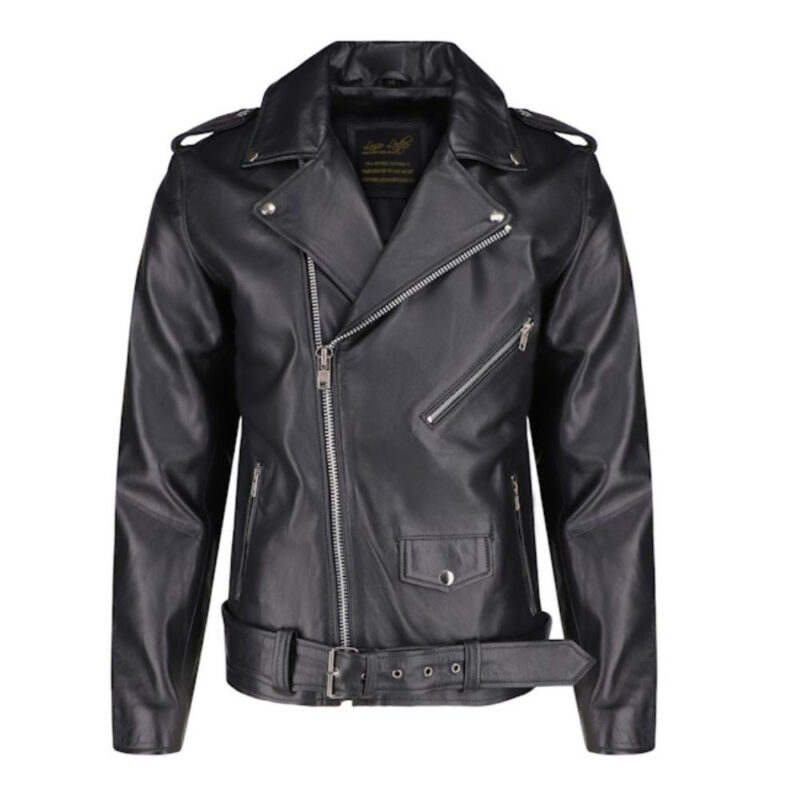 Grab this stylish slim-fit biker-style jacket with a belt. In addition to providing a perfect fit, it is also warm enough to be worn anywhere. A zipper closure and adjustable belt with buckle are used to close this leather jacket. The jacket is lined with satin polyester for warmth and comfort, has notch lapels adorned with pressed studs, has studs on the cuffs, has one pocket inside, three functional pockets outside, and a coin pocket.