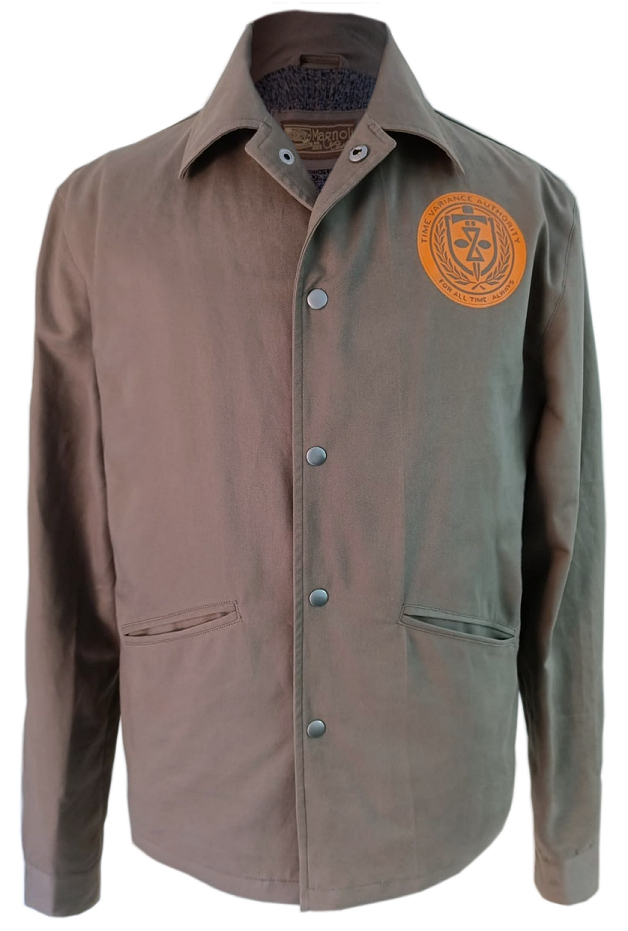 This casual cotton twill jacket features a snap closure front, two angled hand-warmer pockets and double snapped cuffs. Fully lined in a two tone black/grey cotton blend with interior pockets.