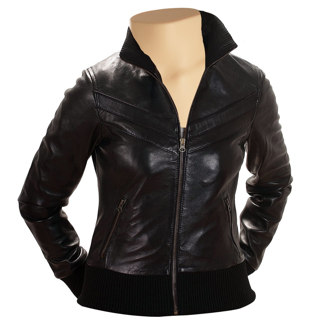 Are you seeking to improve the appearance for which you have been struggling? Then, the stunning Women’s Adele Black Leather Jacket with ribbed collar and hem is the perfect choice for you! It’s manufactured from full-grain leather material. The color is really awesome; it is glossy black which is really unusual. The inner satin polyester lining gives you a durable feeling. The Women’s Adele Black Leather Jacket has an asymmetrical front zipper closure and a notch lapel-style collar with rib-knitted cuffs.