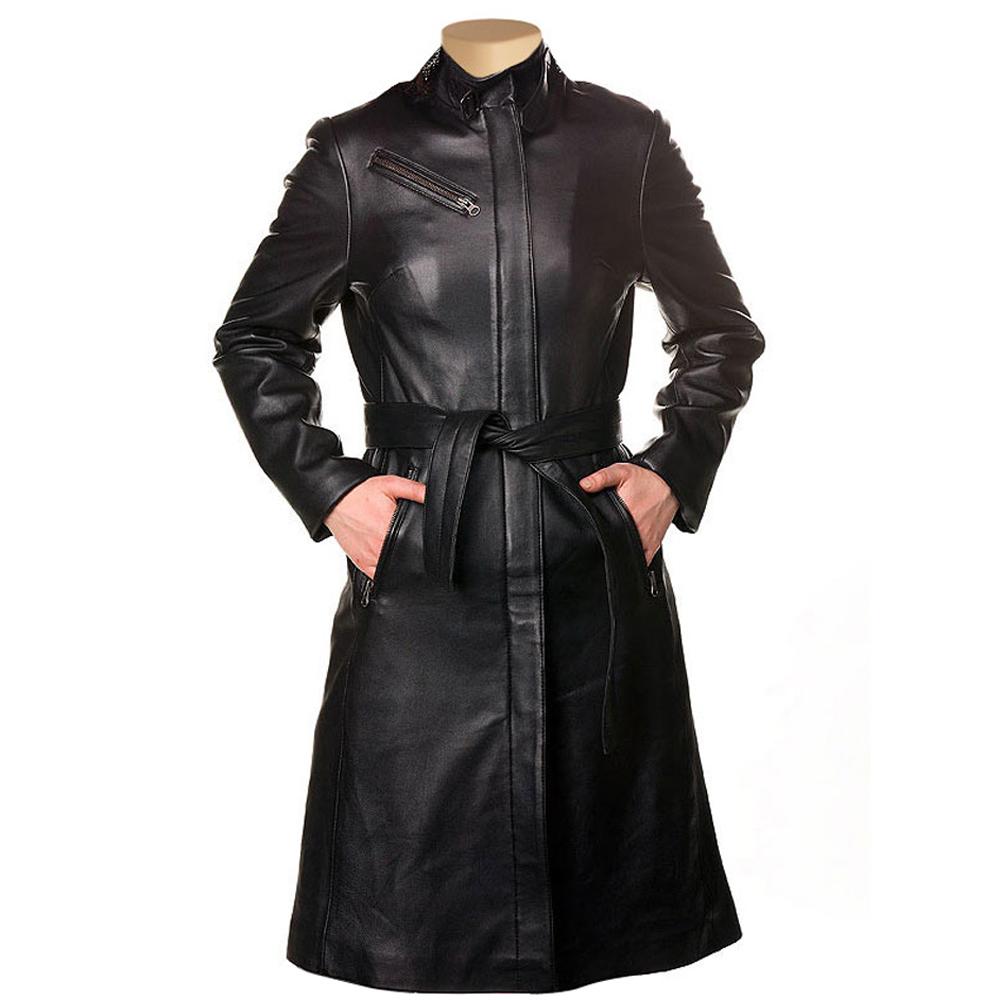 Womens Belinda 3/4 Length Leather Trench Coat