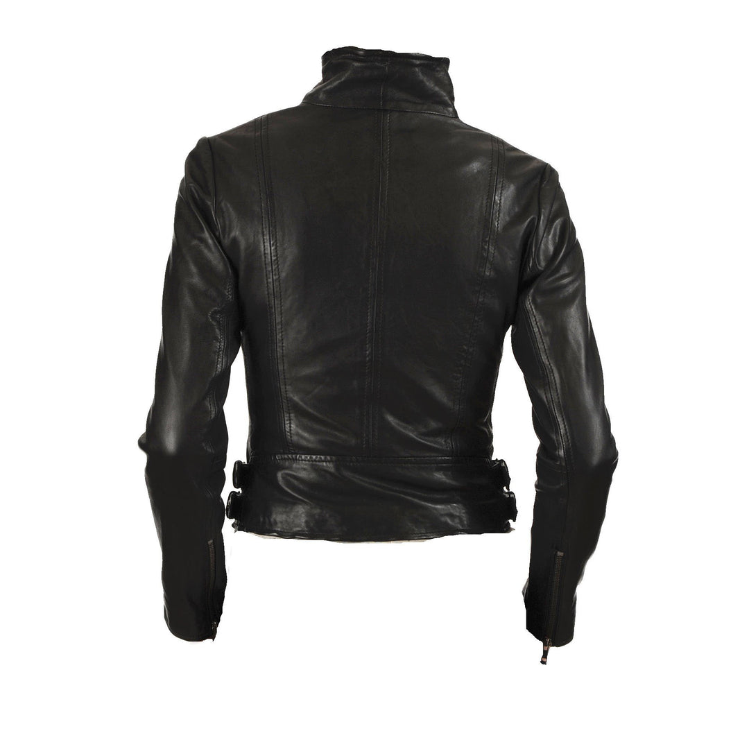 The look of this stunning Women’s biker style jacket with collar belt will make your appearance more captivating and inspiring. The external shell of this women’s biker-style jacket is manufactured from full-grain leather material. On the internal side of this leather jacket, we coated a lining of satin polyester that will keep you warm and comfortable. Women’s biker style jacket comes with an amazing and appealing double-breasted with notch lapels and Collar belt. The front side of this jacket has two functional zipper pockets where you can secure stuff. Moreover, it has an asymmetrical zipper closure that fits in with the style of this outwear perfectly.