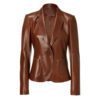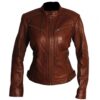 The gorgeous Women’s café racer leather jacket has attractive and appealing that really stands out this winter season. This jacket’s outer side is made of full-grain leather. On the inner side of this jacket, there is a lining of smooth satin polyester attached that keeps you warm and comfy. The jacket comes in tan color. Women’s café racer leather jacket has a zipper attached to its front side for closure. The jacket has a snap tab-style collar with buttons as well. Moreover, it has open-hem buttoned cuffs on full-length sleeves.