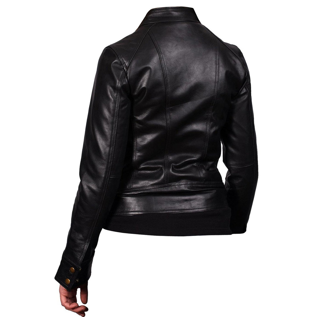 There is the prettiest Women’s Devora Black Leather Jacket with Front Zipper waiting for you that will make you look so beautiful and hot. Its top-quality real leather makes it warm and luxuriant and its soft satin polyester inner will comfy you for how long you wear it. The glossy black color will enhance your beauty. The Women’s Devora Black Leather Jacket has been designed by using attributes like a snap collar, asymmetrical zipper lining with a waist belt, and open hem buttoned cuffs. This jacket is enough to give you a hot personality like everyone wants to follow your way of style.